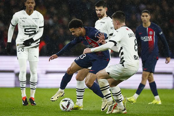Rennes: Mandanda; G Doue, Wooh, Theate, Omari; Matusiwa, Santamaria, Bourigeaud; Gouiri, Terrier; Kalimuendo-Muinga.