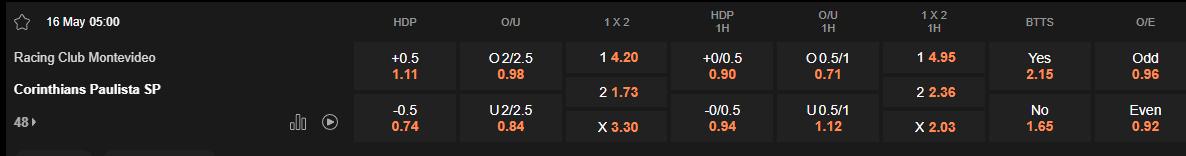 Trong khi đó, Racing đã thể hiện một phong độ kém cỏi khi thua cả 4 trận từ đầu giải. Họ ghi vỏn vẹn 2 bàn và thủng lưới tới 12 lần – trung bình gần 3 bàn thua mỗi trận. Hàng phòng ngự lỏng lẻo và thiếu tổ chức của Racing là cơ hội không thể tốt hơn để Corinthians khai thác. Ngược lại, Corinthians dù cũng gặp khó khăn trong việc tìm kiếm bàn thắng, nhưng sự chắc chắn trong phòng ngự (chỉ thủng lưới 4 lần) vẫn là điểm tựa để họ có thể tự tin triển khai lối chơi.