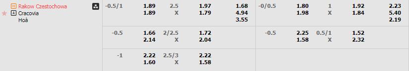 Soi kèo Châu Á Rakow vs Cracovia