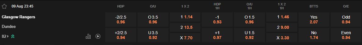 Soi kèo châu Á Rangers vs Dundee