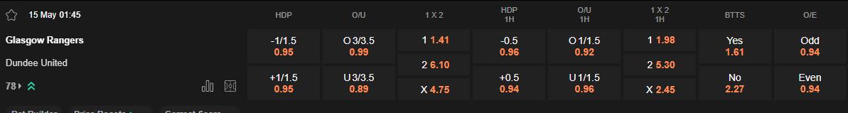 Soi kèo hiệp 1 Rangers vs Dundee United