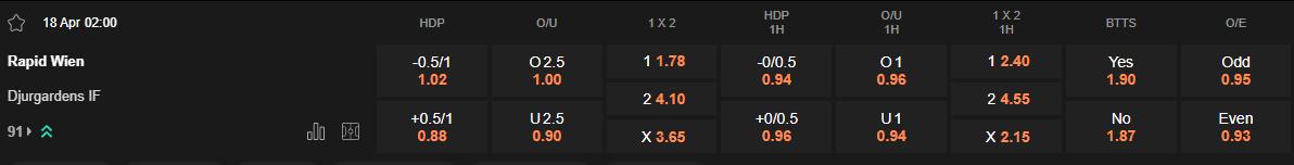 Rapid Vienna thường nhập cuộc rất chủ động tại Allianz Stadion. Với tinh thần hưng phấn sau 2 chiến thắng liên tiếp, đội chủ nhà hoàn toàn có thể tạo thế trận lấn lướt ngay từ đầu nhằm sớm dập tắt hy vọng của đối thủ. Ở lượt đi, dù bị ép sân phần nào, nhưng Rapid vẫn thể hiện bản lĩnh trong các pha chuyển trạng thái. Trở về sân nhà, khả năng kiểm soát trận đấu của họ sẽ còn được phát huy tốt hơn. Trong khi đó, Djurgarden đang có tâm lý nặng nề và chưa ghi bàn nào trong hiệp 1 ở cả 4 trận gần nhất.