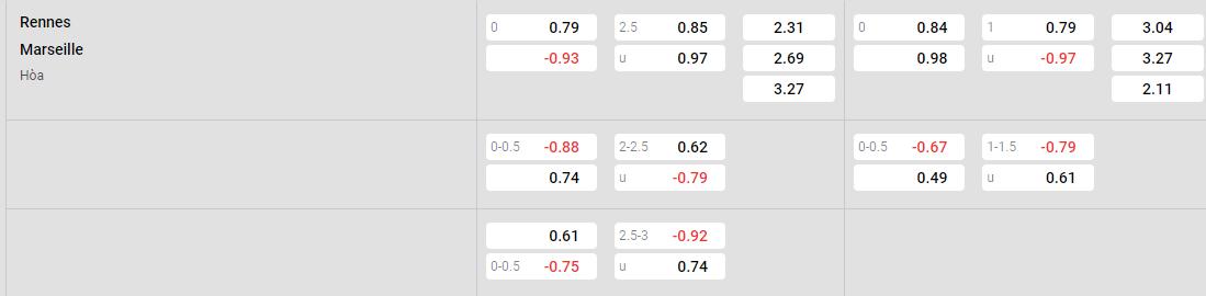 Soi kèo Châu Á Rennes vs Marseille