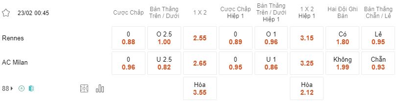 Soi kèo châu Á Rennes vs Milan