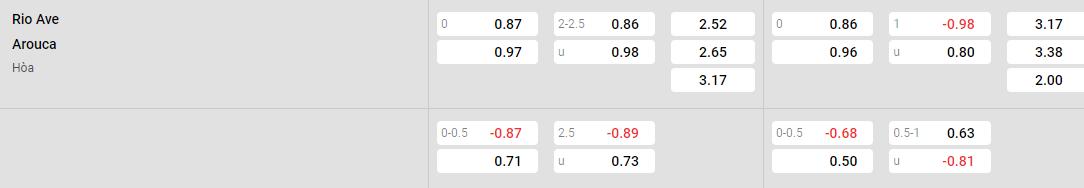 Arouca với phong độ thi đấu ổn định đang nhập cuộc khá tự tin. Khi mà có 3/4 trận gần nhất, họ đã ghi bàn trong hiệp 1. Mặc dù Rio Ave lại đang chơi phòng ngự khá chắc chắn. Với việc họ không nhận bàn thua trong hiệp 1 ở 4/5 lần ra quân gần nhất. Tuy nhiên, khả năng cao Arouca vẫn sẽ ghi bàn dẫn trước và thắng kèo hiệp 1 trận này.