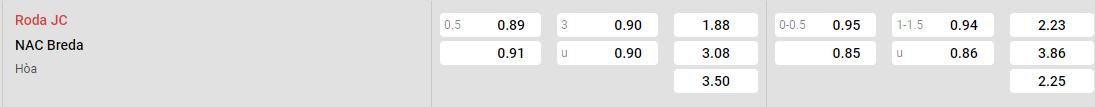 Roda đang có phong độ thi đấu thất vọng trong thời gian gần đây. Theo thống kê cho thấy, sau 5 trận ra quân gần nhất, họ chỉ giành được 1 chiến thắng. Được chơi trên sân nhà, tuy nhiên, phải tiếp đón các vị khách NAC Breda, đây thực sự là một thử thách khó khăn. Do đó, các chuyên gia đang đánh giá cao NAC Breda hơn trong trận kèo này.
