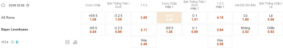 Soi kèo Roma vs Leverkusen lúc 2h00 ngày 3/5/2024