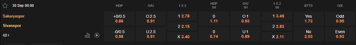 Soi kèo tài xỉu Sakaryaspor vs Sivasspor