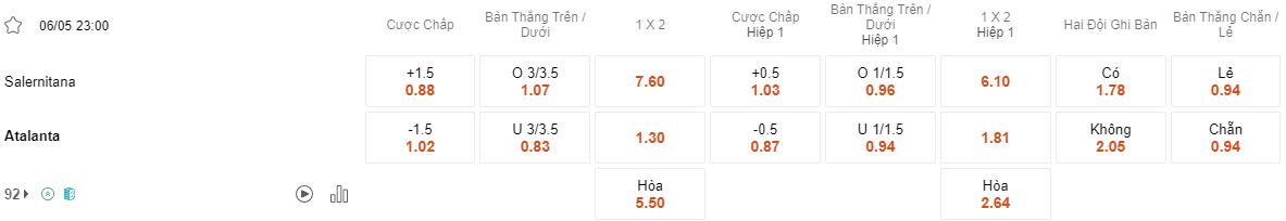 Soi kèo hiệp 1 Salernitana vs Atalanta