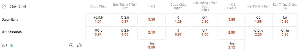 Soi kèo hiệp 1 Salernitana vs Sassuolo