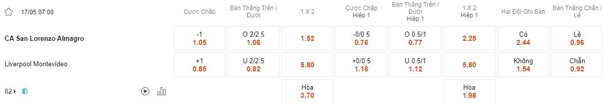 Tỷ lệ kèo San Lorenzo vs Liverpool