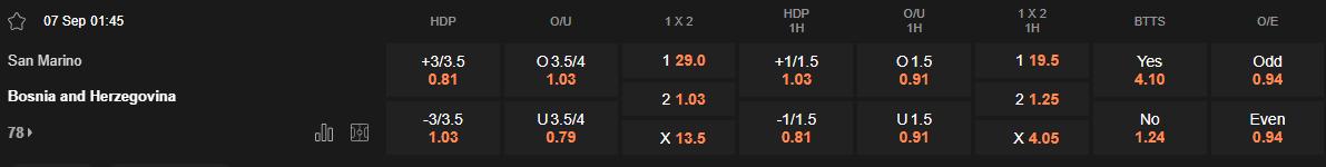 Soi kèo San Marino vs Bosnia lúc 1h45 ngày 7/9/2025