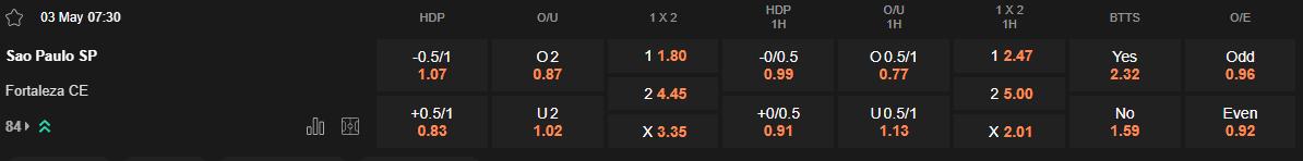 Tỷ lệ kèo Sao Paulo vs Fortaleza