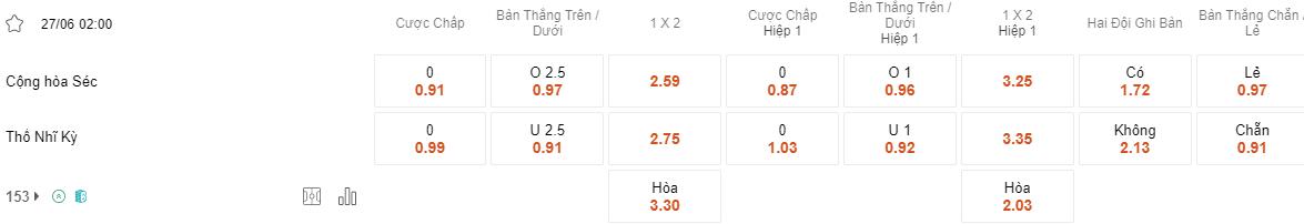 Soi kèo hiệp 1 Séc vs Thổ Nhĩ Kỳ