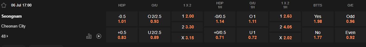 Tỷ lệ kèo Seongnam vs Cheonan City