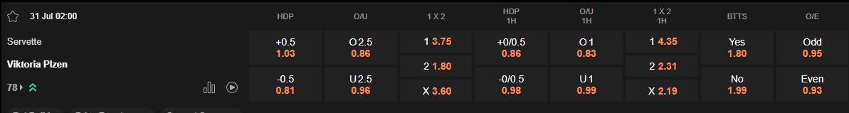 Servette thường nhập cuộc rất tốt khi đá trên sân nhà. Trong 4 trận sân nhà gần nhất, họ đều chỉ để thủng lưới 1 bàn trong hiệp 1, và có 3 trận ghi được bàn mở tỷ số sớm. Trái lại, Plzen thường mất thời gian để ổn định thế trận, và tâm lý buộc phải tấn công có thể khiến họ lúng túng khi đối phương chủ động pressing cao đầu trận. Do đó, Servette hoàn toàn có thể dẫn trước sau 45 phút đầu tiên, đặc biệt khi Plzen còn phải dâng cao và dễ lộ sơ hở ở tuyến dưới.