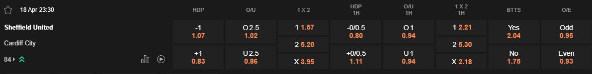 Tỷ lệ kèo Sheffield United vs Cardiff