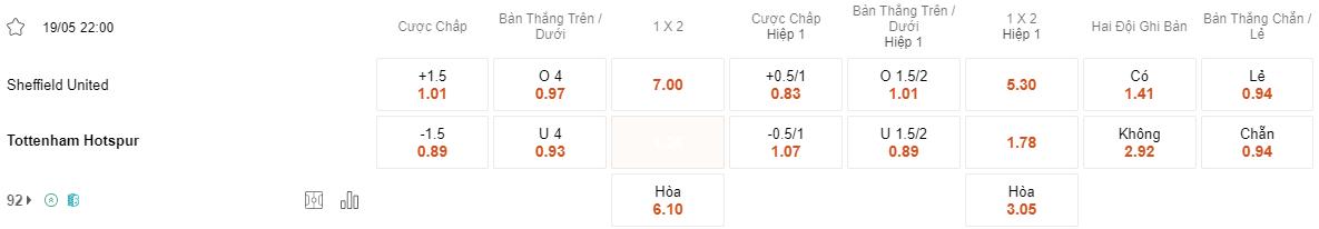 Tottenham đang có mục tiêu rõ ràng hơn trong trận đấu này, và sẽ tập trung không để đội cuối bảng Sheffield United có cơ hội tạo bất ngờ trong trận này. Soi kèo Sheffield United vs Tottenham.