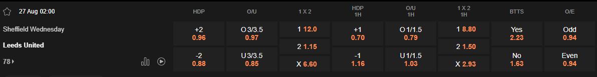 Leeds vẫn giữ được sự ổn định trong những chuyến làm khách, khi chỉ thua 1 trong 7 trận xa nhà gần nhất. Với lực lượng chất lượng hơn, hàng công đa dạng và sự chênh lệch rõ ràng về phong độ, Leeds được đánh giá cao trong việc giành chiến thắng và vượt kèo châu Á.
