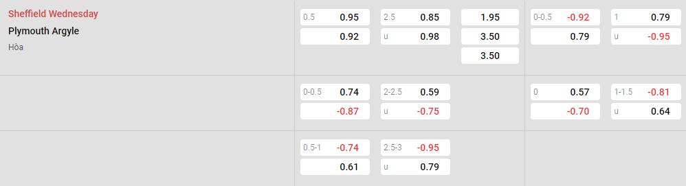 Soi kèo Châu Á Sheffield Wed vs Plymouth