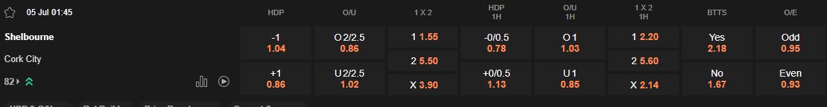 Soi kèo hiệp 1 Shelbourne vs Cork City