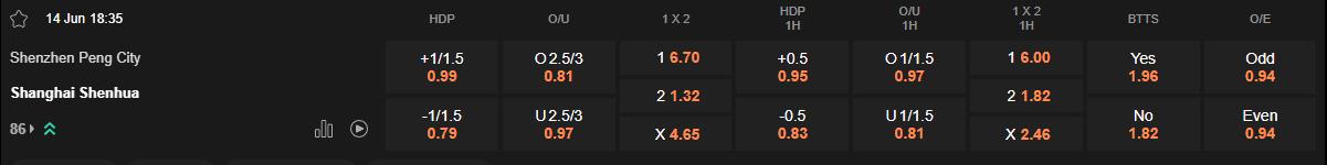Tỷ lệ kèo Shenzhen vs Shanghai Shenhua