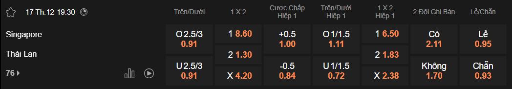 Soi kèo châu Á Singapore vs Thái Lan