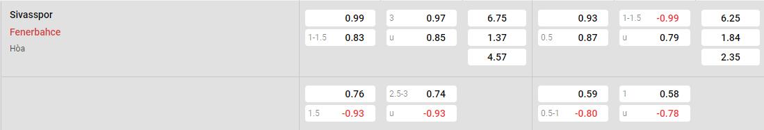 Soi kèo hiệp 1 Sivasspor vs Fenerbahce