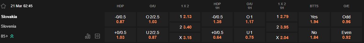 Soi kèo hiệp 1 Slovakia vs Slovenia