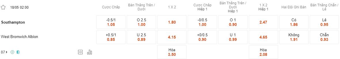 Trong khi đó, West Brom cũng không phải dạng vừa, dù họ gặp khó khăn trên sân khách. Sự ổn định trong phong độ đã giúp West Brom có được một vài kết quả tích cực gần đây, và họ sẽ muốn tiếp tục chuỗi phong độ tích cực này khi đối đầu với Southampton. Dẫu vậy, cửa cược của họ đã khiến bet thủ ôm hận trong 4 lần mở kèo trên sân khách gần đây.
