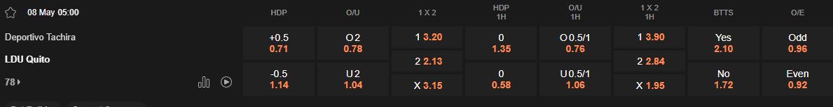 Trong các trận đấu gần đây, LDU Quito thường có xu hướng dâng cao sớm để tìm lợi thế, đặc biệt khi gặp các đối thủ dưới cơ như Tachira. Ở trận lượt đi, họ cũng là đội dẫn bàn ngay trong hiệp 1 nhờ khả năng kiểm soát khu trung tuyến và tận dụng cơ hội tốt. Với việc Tachira thường nhập cuộc chậm, hàng thủ hay mắc sai lầm, kịch bản Quito dẫn trước sau 45 phút đầu là rất khả thi.