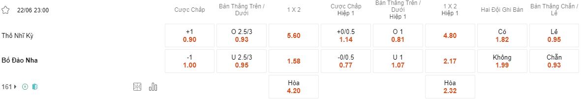 Soi kèo hiệp 1 Thổ Nhĩ Kỳ vs Bồ Đào Nha