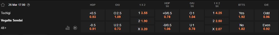 Soi kèo hiệp 1 Tochigi vs Vegalta Sendai