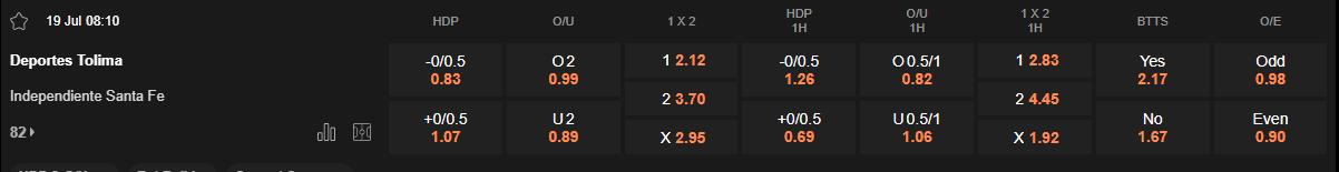 Soi kèo hiệp 1 Tolima vs Santa Fe