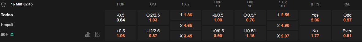 Soi kèo châu Á Torino vs Empoli