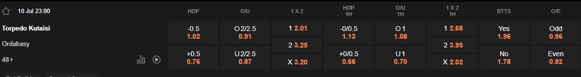 Tỷ lệ kèo Torpedo Kutaisi vs Ordabasy