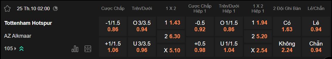 Soi kèo Tottenham vs AZ ngày 25/10