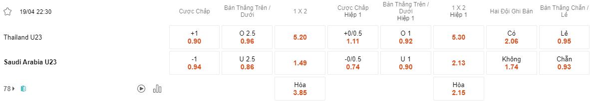 Soi kèo hiệp 1 U23 Thái Lan vs U23 Saudi Arabia