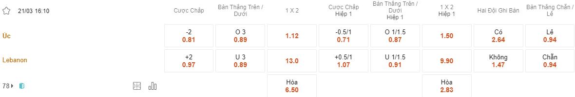 Úc đã thể hiện sức mạnh và sự ổn định cao trong những trận đấu gần đây. Khả năng họ giành chiến thắng trong hiệp 1 là khá cao khi đã liên tục dẫn bàn sớm trong 3 trận gần nhất. Úc đã có những chiến thắng đầy thuyết phục trong các trận đấu vòng loại World Cup trước đó, trong khi Lebanon lại đang gặp khó khăn với phong độ thiếu ổn định. Do đó, việc chọn lựa kèo Úc thắng trong hiệp 1 có thể là một cơ hội hấp dẫn cho người chơi.