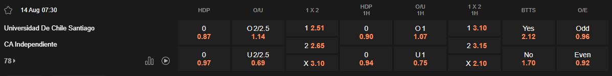 Xét về lịch sử đối đầu, hai đội không chạm trán nhau trong suốt thời gian gần đây. Tuy nhiên, sự ổn định trên sân nhà của Universidad Chile so với phong độ phập phù của Independiente là yếu tố then chốt để tin vào kịch bản đội chủ nhà thắng kèo châu Á.