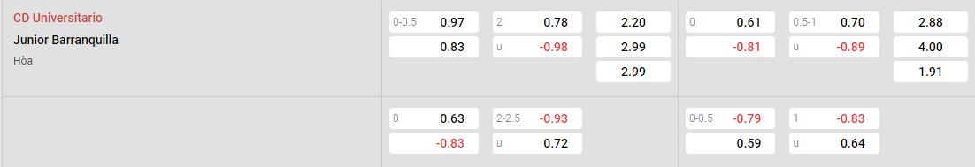 Theo thống kê cho thấy, Universitario đang là cửa đặt an toàn trên sân nhà. Khi mà họ đã thắng cược sau 5 trận kèo gần nhất. Trong khi đó, Junior lại đang không có được thành tích kèo ấn tượng. Với việc họ chỉ thắng cược 2/6 trận kèo gần nhất. Do đó, các chuyên gia đang đánh giá Universitario sẽ là lựa chọn an toàn hơn.