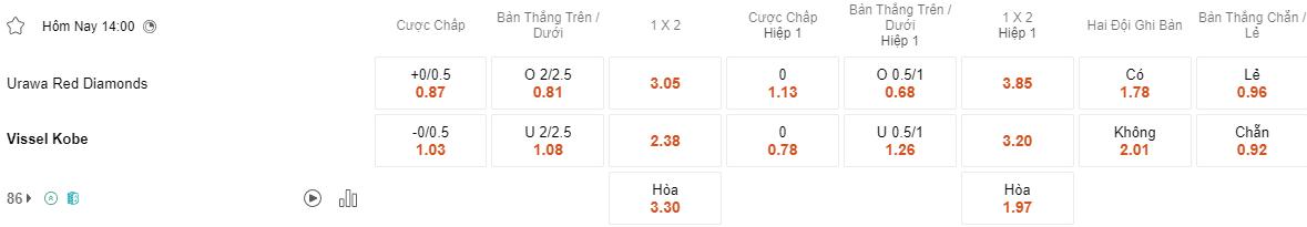 Tỷ lệ kèo Urawa Reds vs Vissel Kobe