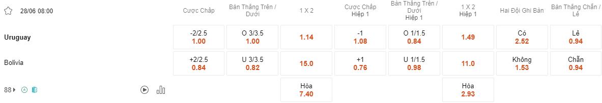 Soi kèo hiệp 1 Uruguay vs Bolivia