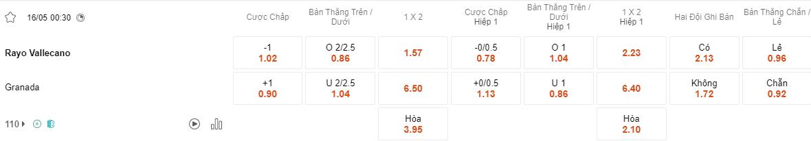 Nếu nhìn vào các số liệu, Rayo Vallecano được đánh giá cao hơn khi đối đầu với Granada. Trong 5 trận gần đây nhất giữa hai đội, Rayo đã giành được 4 chiến thắng và chỉ để hòa 1 trận. Với các yếu tố trên, Rayo Vallecano đang là phương án lựa chọn đáng giá lúc này.