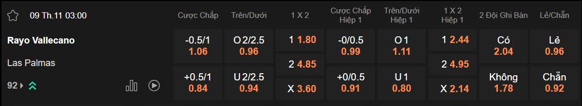 Soi kèo châu Á Vallecano vs Las Palmas