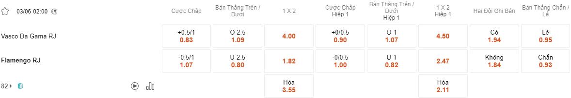Soi kèo châu Á Vasco da Gama vs Flamengo