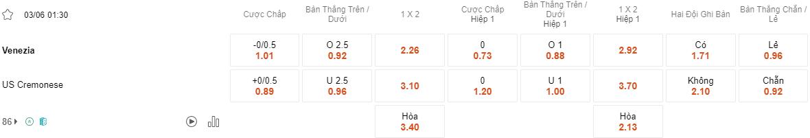 Soi kèo hiệp 1 Venezia vs Cremonese