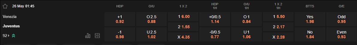 Juventus bước vào vòng đấu cuối trong thế “tự quyết” – chỉ cần thắng Venezia là chắc chắn giữ vị trí trong top 4 và suất dự Champions League mùa sau. Dưới thời HLV Igor Tudor, “Bà đầm già” sở hữu những khoảnh khắc đáng giá, đặc biệt là chiến thắng 2-0 trước Udinese ở vòng 37. Họ cũng đã bất bại trong 4 trận gần nhất. Juventus vượt trội về lực lượng, phong độ lẫn kinh nghiệm thi đấu đỉnh cao, đặc biệt ở những trận cầu then chốt.