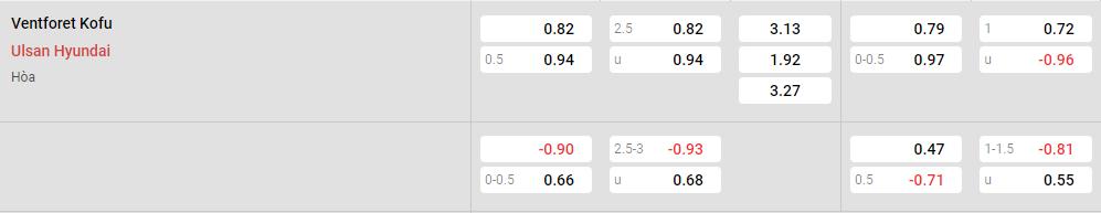 Trái ngược, Ventforet Kofu đang có phong độ thi đấu thiếu ấn tượng trong thời gian gần đây. Theo thống kê cho thấy, sau 4 trận ra quân gần nhất, họ chỉ giành được 1 chiến thắng. Được chơi trên sân nhà, tuy nhiên, phải tiếp đón các vị khách Ulsan, đây thực sự là một thử thách khó khăn. Do đó, các chuyên gia đang đánh giá cao Ulsan hơn trong trận kèo này.