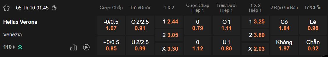 Soi kèo Verona vs Venezia lúc 01h45 ngày 5/10/2024